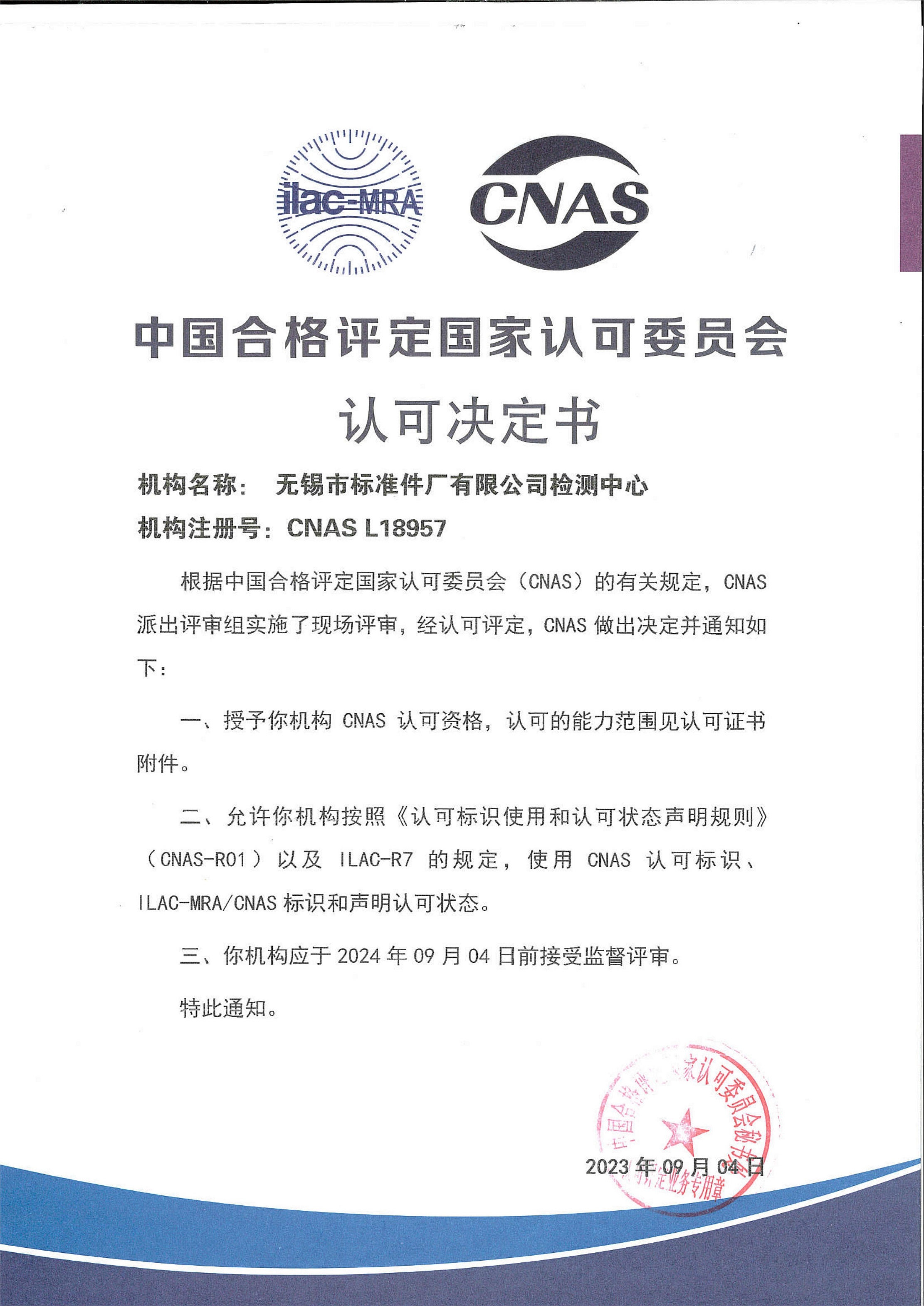 热烈庆祝公司荣获“CNAS 实验室认可证书