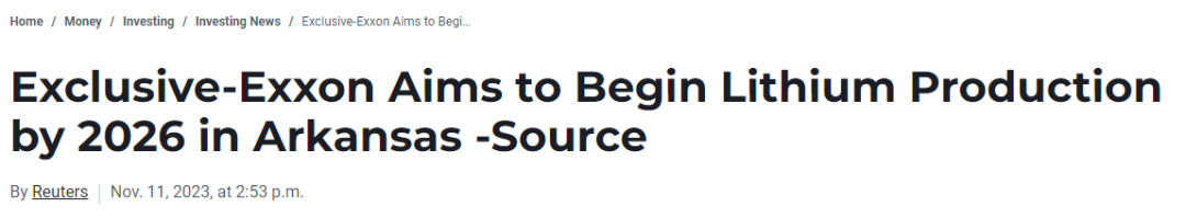 2023年5月,有消息指出,埃克森美孚公司已从GalvanicEnergy公司手中购买了位于美国阿肯色州南部Smackover储层12万英亩(约合485平方千米)土地的开采权,计划在这片土地上生产锂。